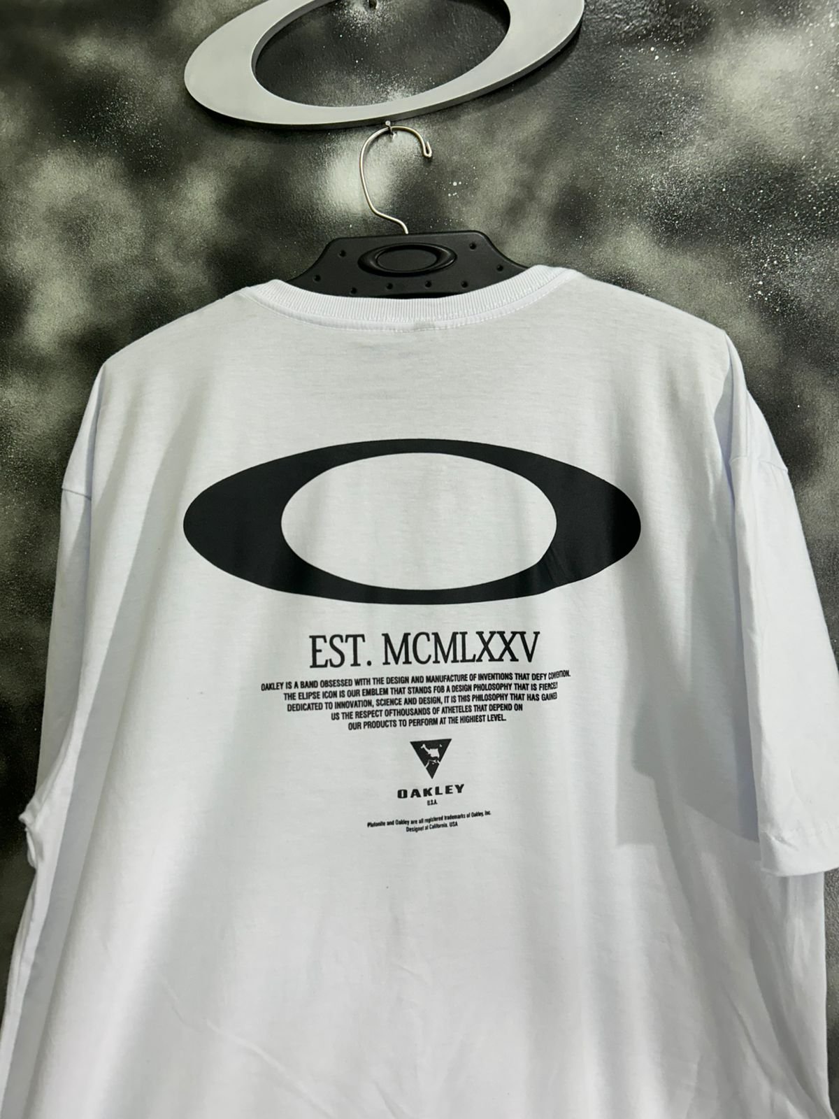 ✅ Estampa nas costas com logo e manifesto Oakley