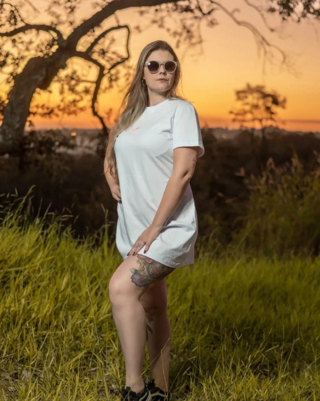 • Modelagem oversized (pode ser usada como camiseta ou vestido)