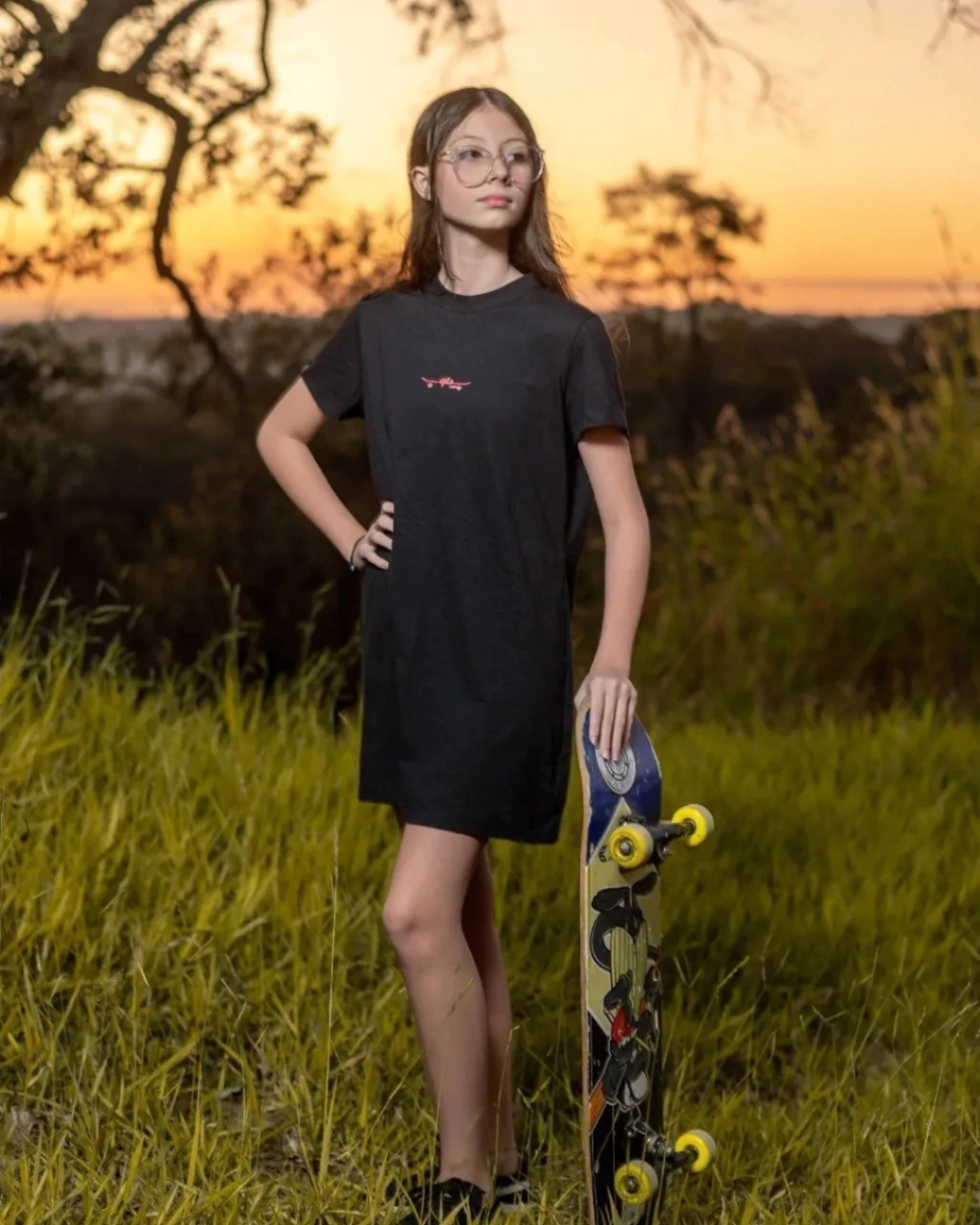 • Camiseta/vestido confeccionado em 100% algodão (malha 26.1 penteada)