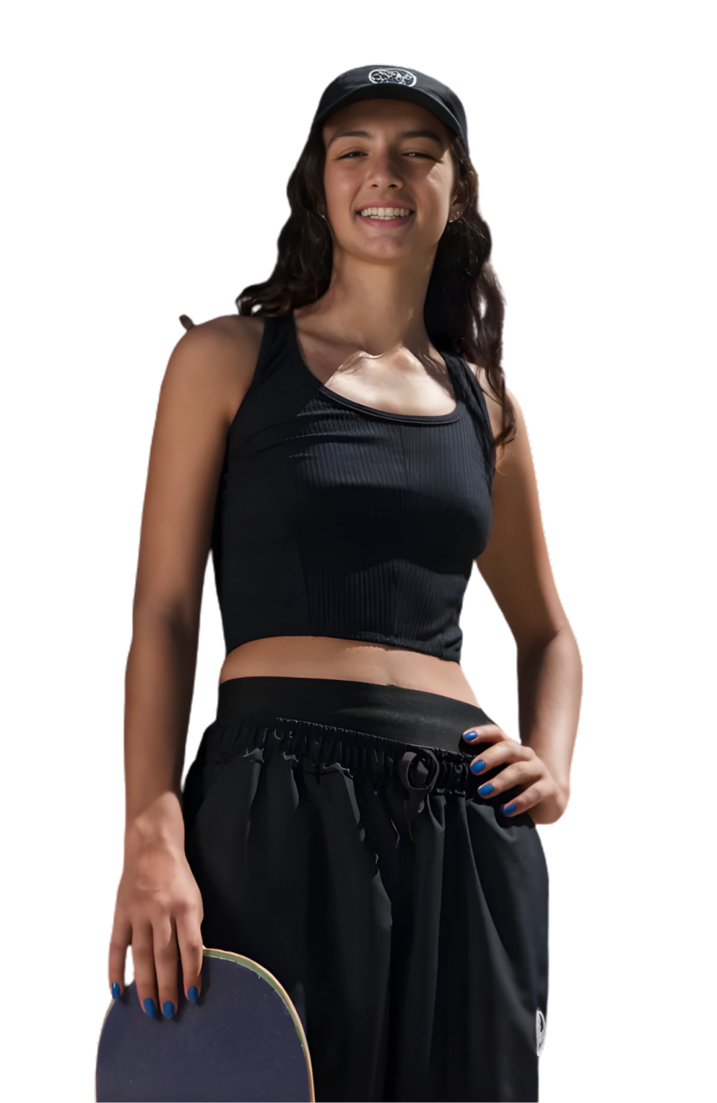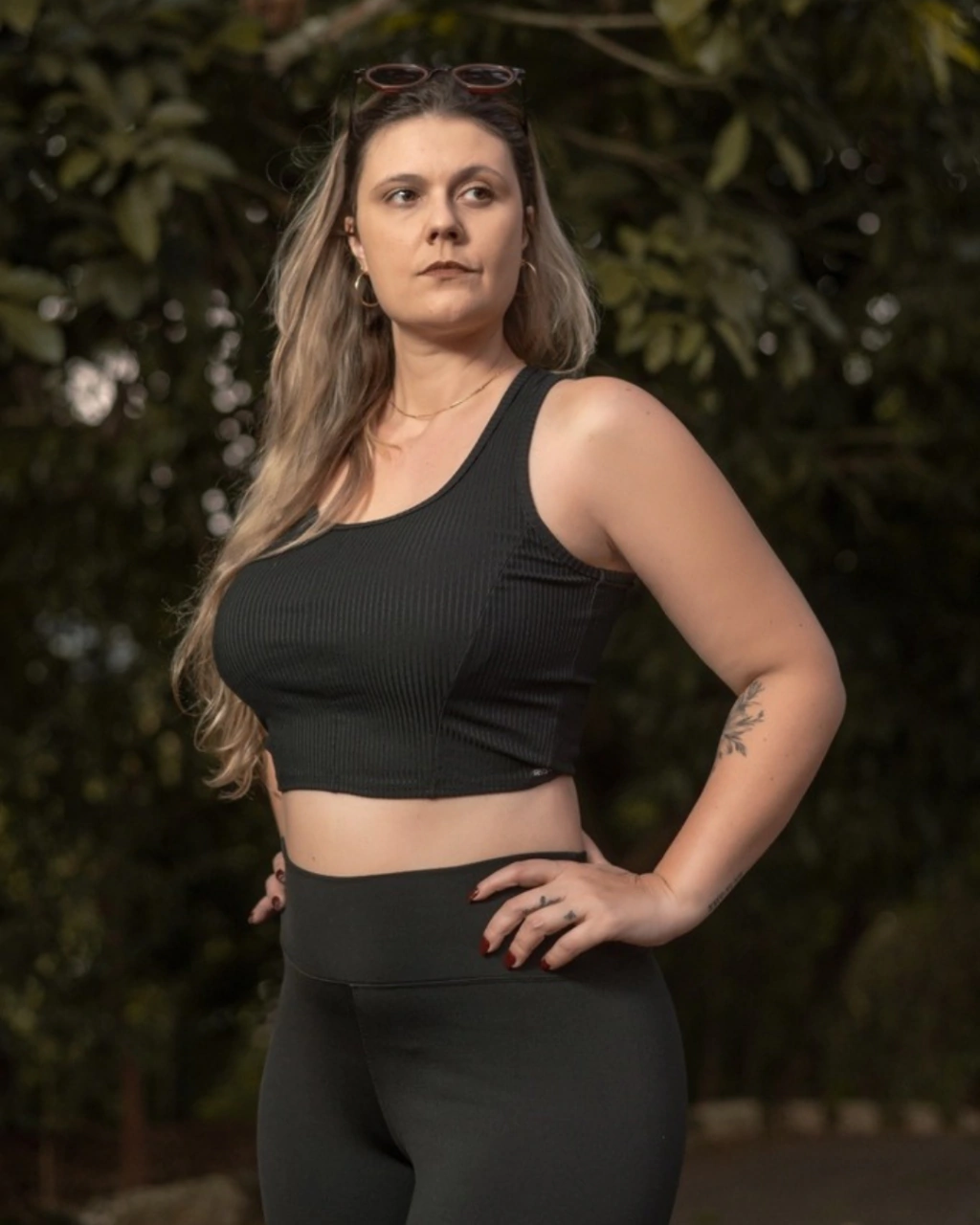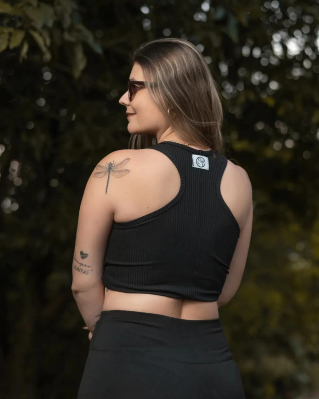 Cropped Premium Feminino QTS CREW Preto | Malha Canelada 100% Poliéster